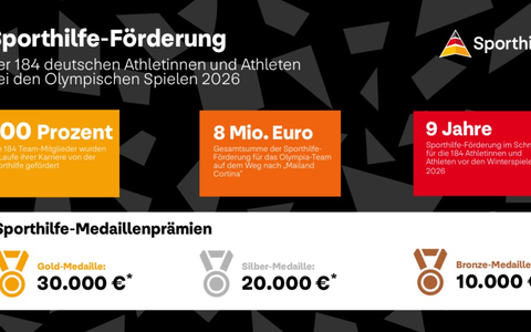 Bei einer Podestplatzierung fallen die Sporthilfe-Medaillenprämien und somit auch die geplante Prämiensumme bei diesen Spielen so hoch aus wie nie zuvor: Für eine Goldmedaille erhalten Athletinnen und Athleten 30.000 Euro (zuvor 20.000 Euro), für Silber 20.000 Euro (zuvor 15.000 Euro) und für Bronze 10.000 Euro. Zudem sind die Sporthilfe-Medaillenprämien für Erfolge bei Olympischen und Paralympischen Spielen dank eines Beschlusses des Deutschen Bundestags seit diesem Jahr steuerfrei. Mehr dazu...