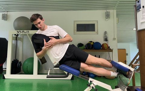 "Zwei Wochen nach der OP habe ich wieder mit Bein- und Rumpftraining angefangen und nutze das Ergometer. Aktuell bin ich in Bad Endorf auf Reha, eine Klinik, die auf die Bedürfnisse von Profi-Sportler:innen ausgelegt ist. Hier dreht sich alles um Mobilisation und Beweglichkeit. Sechseinhalb Wochen nach der OP habe ich die volle Freigabe, über 90 Grad zu bewegen. Alles im schmerzfreien Bereich. Wir haben von Anfang an den Fokus auf Beweglichkeit gesetzt, weil das der Schulter guttut. Und immer von Woche zu Woche geplant und das Training angepasst. Kleine Schritte sind bei solch einer Verletzung am zielführendsten."
