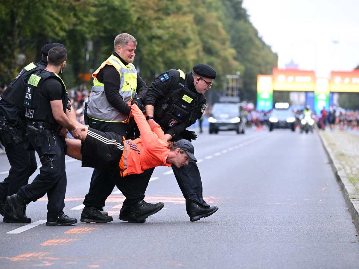 Die Letzte Generation hatte angekündigt, den Marathon unterbrechen zu wollen. Mitglieder der Gruppe protestierten die gesamte Woche über mit Aktionen in Berlin. Die Polizei und Berlins Innensenatorin Iris Spranger (SPD) hatten ein konsequentes Vorgehen angekündigt.