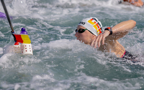 Leonie Beck hat bei den Weltmeisterschaften in Katar im Freiwasserschwimmen auch über fünf Kilometer eine Medaille verpasst. Die Titelverteidigerin kam auf den 14. Platz.