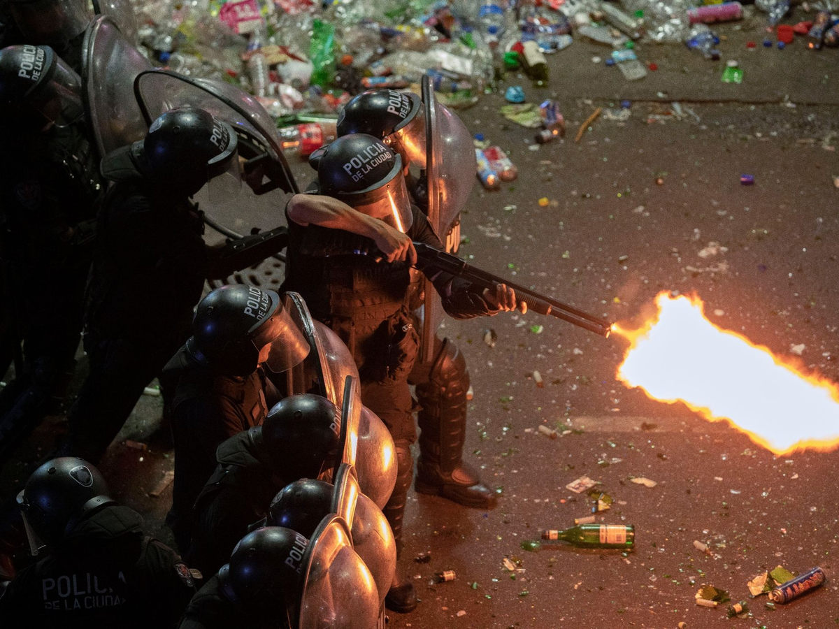 Auf Fotos war zu sehen, wie Einsatzkräfte mit Helmen und Schildern geschützt in Formation rund um den Obelisken standen, um den herum argentinische Fußball-Fans traditionell Siege feiern. Den Angaben zufolge handelte es sich um isolierte Vorfälle, als der größte Teil der Menschen schon nicht mehr vor Ort war.