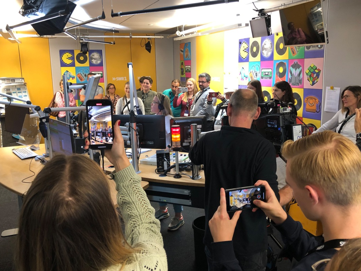 Ob Hörfunk, Fernsehen oder Social Media - die Zuschauerinnen, Zuhörer und User sind live mit dabei, wählen Nachrichten aus, sprechen sie, produzieren Beiträge oder sind als Reporterinnen und -Reporter im Einsatz. In Workshops erleben die Teilnehmenden den journalistischen Alltag hautnah: Warum wird über manche Themen groß berichtet, während andere kaum Beachtung finden? Wie arbeitet man unter Zeitdruck, wenn plötzlich etwas auf der Welt passiert? Und welche Rolle kann und darf Künstliche Intelligenz in einer Nachrichtenredaktion spielen?