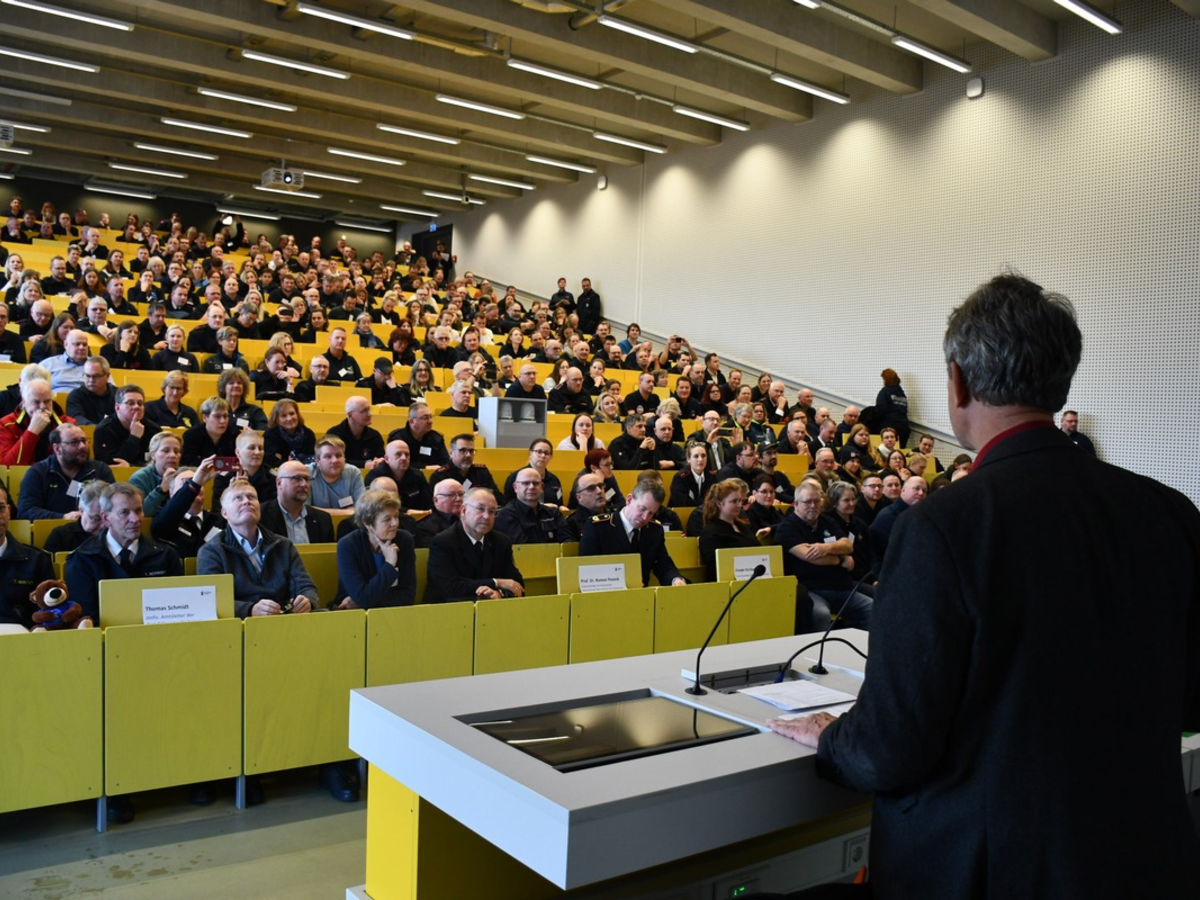 Ausschussvorsitzender Frieder Kircher dankte den Mitwirkenden der Feuerwehr und der UniversitĂ€t Kassel fĂŒr die hervorragende Vorbereitung der Veranstaltung. Er betonte bei der Eröffnung des Forums die Passgenauigkeit der VortrĂ€ge: "Die hohe Teilnehmerzahl unterstreicht das groĂe Interesse an der Veranstaltung - aber auch, dass wir die richtigen Themen ausgewĂ€hlt haben!" Angeboten wurden in diesem Jahr 22 Referate aus den Bereichen Notruf und Notfallkommunikation, Risikokommunikation, Selbstschutz und PrĂ€vention, Brandschutzpraxis, -pĂ€dagogik und Inklusion sowie Bildung, Medien und Digitalisierung. So lieĂen sich die Teilnehmerinnen und Teilnehmer verschiedene Konzepte zur Brandschutzerziehung bei Menschen mit Behinderungen, die Kommunikation des richtigen Umgangs mit Akkus im Haushalt oder online zur VerfĂŒgung stehende Ressourcen vorstellen. Die Nutzung eines Sprachdialogsystems bei der Notrufannahme wurde genauso diskutiert wie der Einsatz von Handpuppen oder die digitale Umsetzung von Brandschutzerziehung zum Thema Waldbrandgefahr in Ăsterreich. Das Projekt eines Aktionstags zum Katastrophenschutz in 6. Klassen, der "Katastrophen-Checker-Pass" fĂŒr Kinder und die Brandschutzerziehung mit Selbsthilfe-Schwerpunkt rundeten die VortrĂ€ge ab. Eine Abendveranstaltung bot zusĂ€tzlich Gelegenheit zum Erfahrungsaustausch. "Auch dieser Teil ist wichtig, weil er Menschen aus ganz Deutschland zusammenbringt", betonte Kircher. Bei einer begleitenden Fachausstellung konnten sich die Expertinnen und Experten ĂŒber neue Produkte und Projekte informieren.