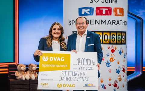24.11.2025 - 09:30:00 | presseportal.deSo setzte die DVAG erst im Juli anlässlich des 50-jährigen Unternehmensjubiläums erneut ein starkes Zeichen und spendete über "DVAG hilft e. V." eine Million Euro an die "Stiftung RTL - Wir helfen Kindern e. V." Diese gemeinsame Spende der Vermögensberaterinnen und Vermögensberater sowie der Mitarbeitenden der Zentrale in Frankfurt wird zur bundesweiten Förderung von verschiedenen Projekten und Initiativen für gerechtere Zukunftsperspektiven von Kindern verwendet. Im Rahmen des 30. RTL-Spendenmarathons sammelte das Familienunternehmen abermals kräftig für den guten Zweck. Insgesamt konnten so in diesem Jahr 1,4 Millionen Euro durch verschiedene Spendenprojekte zugunsten der Kölner Stiftung übergeben werden, mehr als jemals zuvor! Mit dieser Rekordsumme fördert das Unternehmen unter anderem Frühstücks- und Verpflegungsangebote, Bildungsprojekte sowie Schwimmkurse. So werden zukünftig beispielsweise Projekte von "brotZeit e. V.", Tafel Deutschland und der Deutschen Kinder- und Jugendstiftung unterstützt.