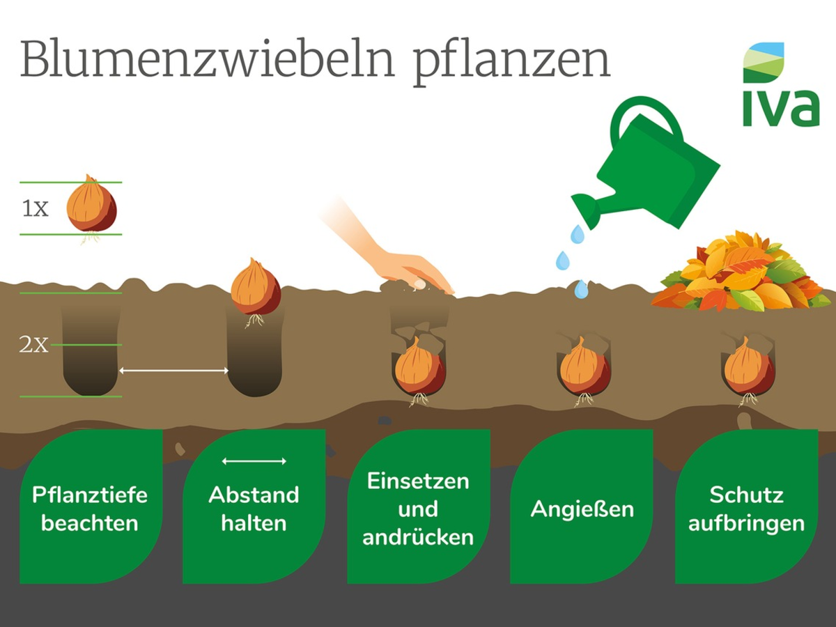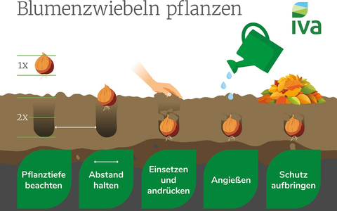 Der IVA rät Gartenfreunden, beim Kauf auf lose oder in Netzen verpackte Ware zu achten, da sich die Qualität hier besser prüfen lässt. Große, feste Zwiebeln sind meist vitaler und bringen kräftigere Blüten hervor. Bereits austreibende oder weiche Exemplare sollten nicht mehr verwendet werden.
