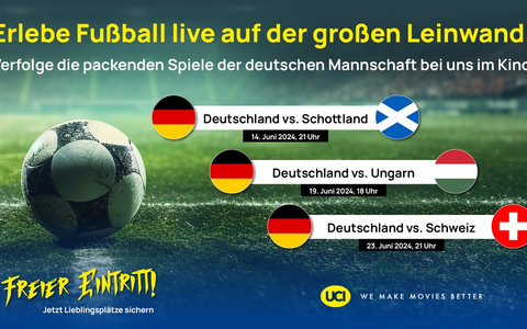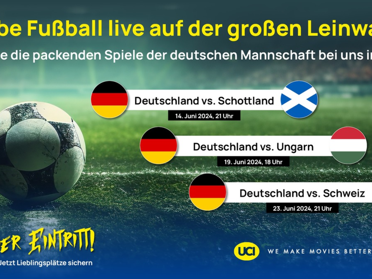Fußball auf der großen Leinwand in UCI Kinos / Familienfreundliches Public Viewing der Gruppenphase ab 14. Juni