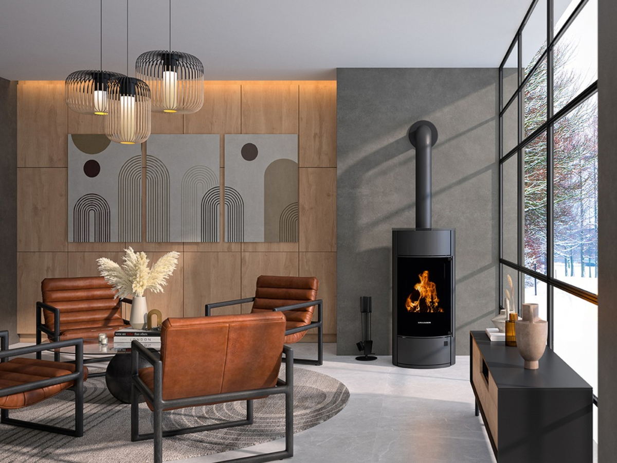 Die minimalistische Ästhetik harmoniert mit puristischen, industriellen oder luxuriösen Einrichtungsstilen. Die konsequent schwarze Optik sorgt auch außerhalb der Heizsaison für eine stilvolle Raumwirkung. Ohne sichtbare Brennkammer und mit einer edlen, geschlossenen Front wird der Ofen zur Skulptur, die auch ohne Flammen beeindruckt.