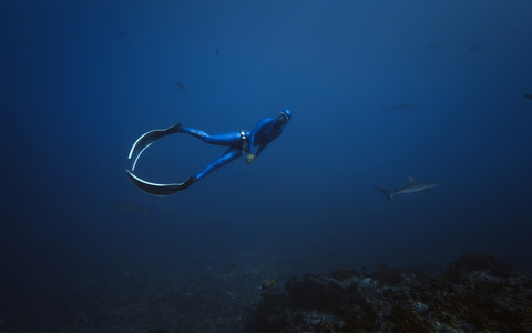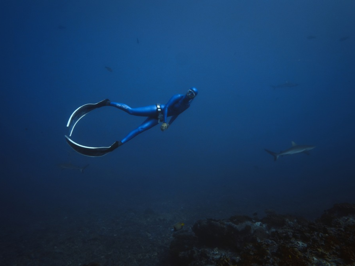"Im Meer gibt es unendlich viele Begegnungen mit Lebewesen. Vor allem dann, wenn man ganz still hält - Fische und anderes Getier kommen nämlich, um unter einem Schutz zu suchen. Das ist ein wunderbares Erlebnis. Meeresbewohner begegnen Apnoetauchern oft mit Neugierde. Wir machen keine Geräusche und bewegen uns langsam. Gerade die größeren Tiere wie Haie, Rochen und Robben kommen, um zu gucken, was das für ein Tier ist, das da herumschwimmt. Als Apnoetaucher kann man wirklich einmalige Begegnugen erleben."