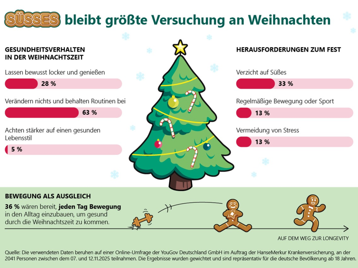 Stollen statt Sport, Lebkuchen statt Longevity? HanseMerkur-Umfrage zeigt: Süßes bleibt größte Versuchung an Weihnachten