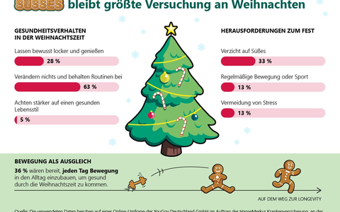 Trotz aller süßen Festtagsfreuden bleibt der Wunsch nach einem langen, gesunden Leben grundsätzlich präsent. Viele verbinden damit den Gedanken, möglichst gesund alt zu werden - für 52 Prozent ist dies sogar der wichtigste Grund, aktiv etwas für die eigene Gesundheit zu tun. Bewusstsein und Eigenverantwortung gelten als zentrale Schlüssel, um dieses Ziel zu erreichen. Die Motivation dazu kommt bei knapp der Hälfte der Befragten von der Familie, Freunden und dem Partner (47 Prozent) sowie von Ärzten (17 Prozent).