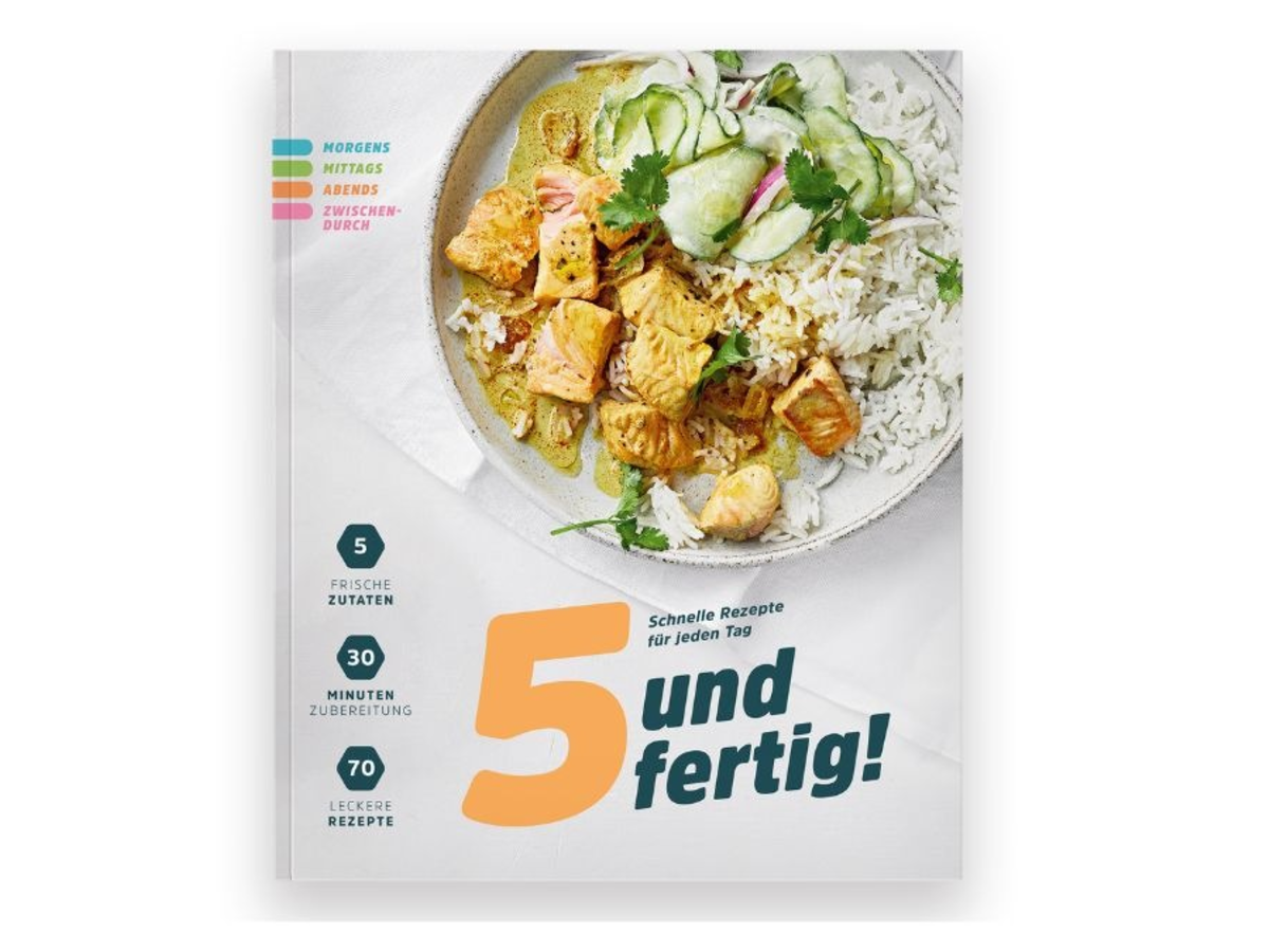 Mit dem neuen Kochbuch beweist EDEKA einmal mehr, dass einfacher und schneller Genuss auch mit kleinem Geldbeutel möglich ist. "5 und fertig!" ist bereits das zehnte Buch in der Kochbuch-Reihe der EDEKA Media GmbH. Wie seine erfolgreichen Vorgänger "Grillen - Das Buch", "Backen - Das Buch" und "One Pot - Das Buch" überzeugt auch das neue Werk durch köstliche Rezepte und eine moderne Food-Fotografie. Ab heute ist "5 und fertig!" als Softcover für 9,95 Euro bei EDEKA, Marktkauf und im Buchhandel erhältlich.