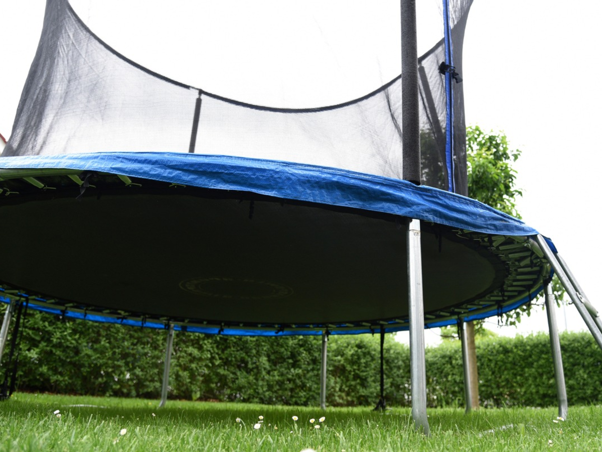 Auch der Untergrund spielt eine Rolle für die Sicherheit. Betonplatten oder steinige Flächen sollten vermieden werden. "Am besten geeignet ist eine ebene Rasenfläche. Falls der Untergrund uneben ist, kann es zu Instabilität oder ungleichmäßiger Federung kommen", so Ziegler. Damit das Gerät auch bei stärkerem Wind sicher steht, ist zudem eine Befestigung sinnvoll, zum Beispiel mit Bodenankern. Die meisten Hersteller verweisen auch darauf, dass bei Sturm das Sicherheitsnetz und Sprungtuch abgenommen werden sollten.