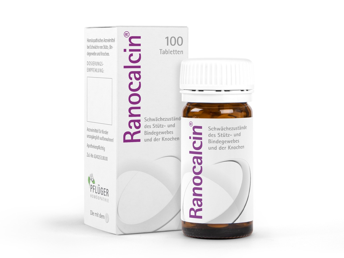 Für alle, die ihren Rücken gezielt unterstützen möchten, bietet Pflüger mit Ranocalcin® ein bewährtes homöopathisches Komplexmittel. Die Tabletten enthalten sechs sorgfältig aufeinander abgestimmte mineralische, homöopathisch potenzierte Wirkstoffe. Die Kombination aus Eisen, Zink, Kieselsäure und einem wertvollem Calcium-Trio unterstützt ganzheitlich und nachhaltig die unterschiedlichen Strukturen des Bewegungsapparats. Im Rahmen der Therapie kann Ranocalcin® sowohl bei akuten als auch chronischen Beschwerden eingesetzt werden. Das Präparat eignet sich auch für eine längerfristige Anwendung und kann ab dem ersten Lebensjahr eingesetzt werden. Die Wirksamkeit und Verträglichkeit von Ranocalcin® wurden in einer nichtinterventionellen Studie belegt.
