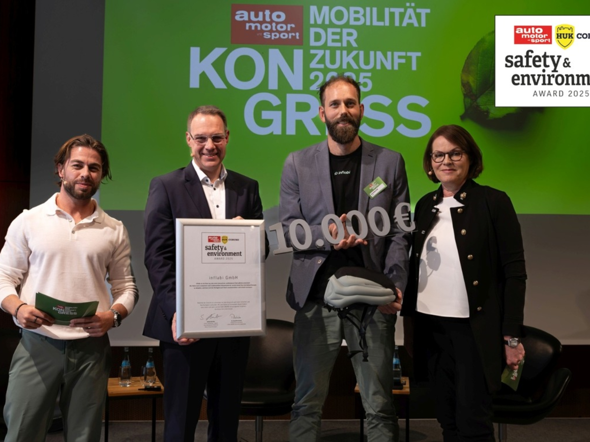 Für dieses innovative Konzept wird Inflabi nun mit dem Safety & Environment Award 2025 geehrt, den auto motor und sport gemeinsam mit der Versicherungsgruppe HUK-COBURG ausschreibt. Der mit 10.000 Euro dotierte Preis wird im Rahmen des auto motor und sport KONGRESS vom 13. bis 14. Oktober 2025 überreicht. "Mit dem Preis honorieren wir Innovationen, die Mobilität sicherer und nachhaltiger machen, und das über die ganze Bandbreite der Verkehrsmittel", sagt Birgit Priemer, Chefredakteurin von auto motor und sport. "Die Unfallzahlen mit Rad- und E-Scooterfahrern sind in den vergangenen Jahren leider deutlich gestiegen, und mit dem Helm von Inflabi könnte es für mehr Menschen Routine werden, sich auch bei kurzen Fahrten besser zu schützen."