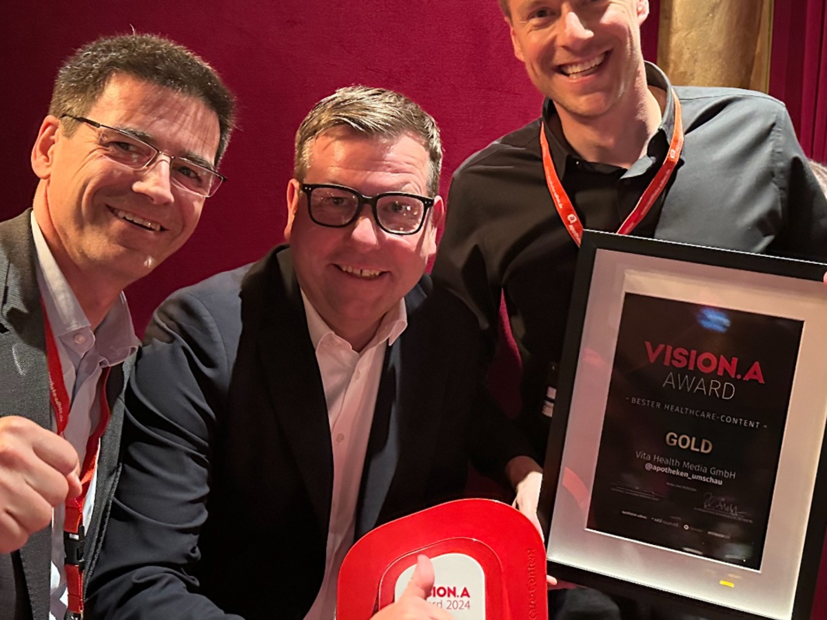 Bei der Vision.A Zukunftskonferenz vonApotheke Adhoc, konnte sich gestern Abend die Wort & Bild Verlagsgruppe über einen Riesenerfolg freuen: In der Kategorie "Bester Healthcare Content" gab es den Vision.A Award in Gold für den Auftritt von @apotheken_umschau, den Instagram-Kanal der Apotheken Umschau, den die Vita Health Media GmbH im Auftrag des Wort & Bild Verlags pflegt. Silber gab es für die Initiative "Über Medikationsfehler reden" in der Kategorie "Engagement für die Apotheke".