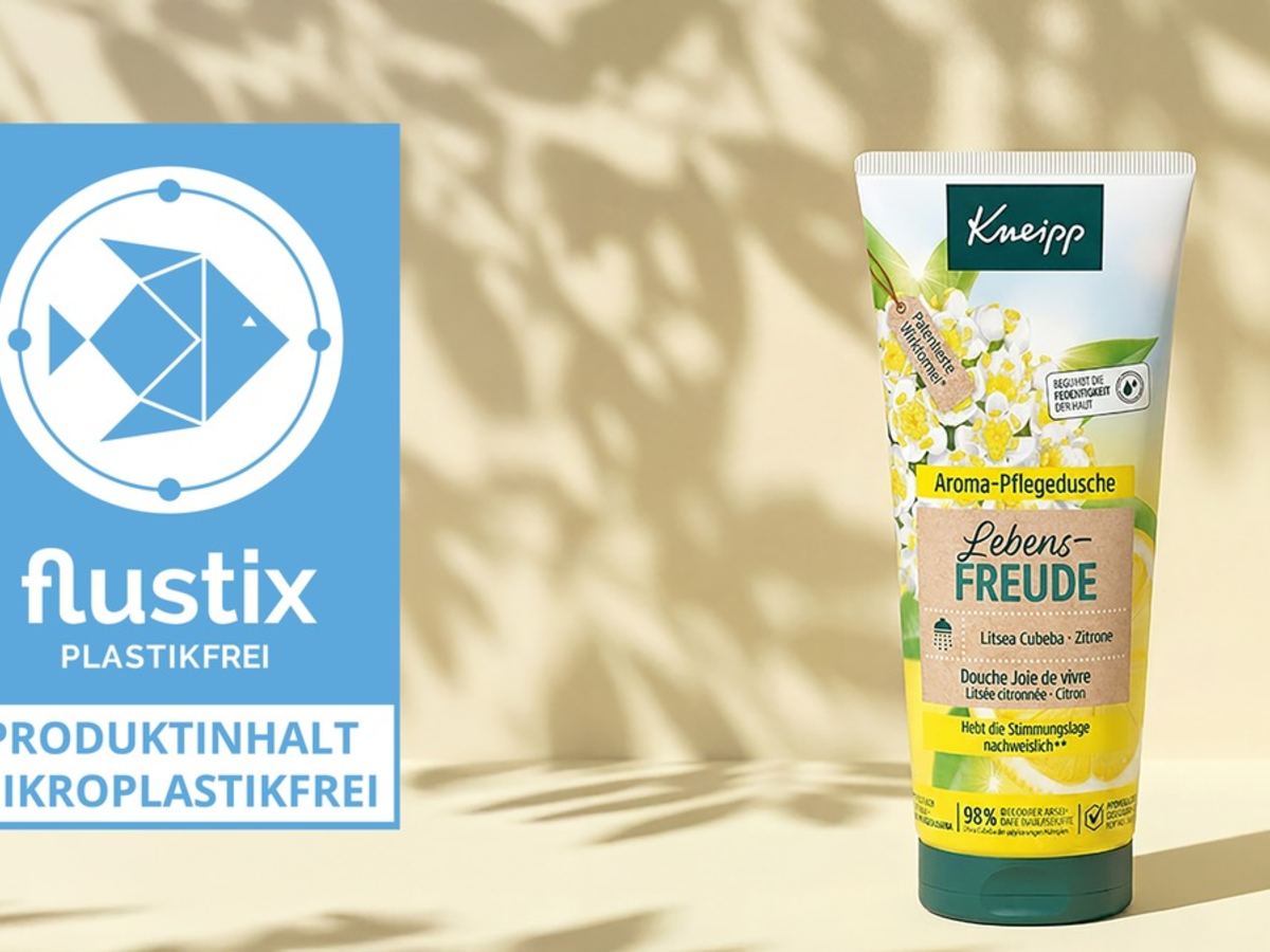 Das flustix-Siegel "Produktinhalt mikroplastikfrei" tragen künftig Kneipp Produkte aus neun verschiedenen Kategorien: Aroma-Duschen, Duschbalsam, MEN Duschen, Körperöle, Handcreme, Pflegeschaumbad, Naturkind Schaumbad, Badeöle und Lippenpflege.
