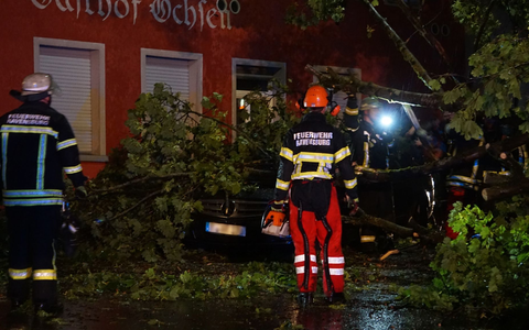 Sowohl in Baden-Württemberg als auch in Bayern sorgten herabgefallene Äste, umgestürzte Bäume und Blitzeinschläge in Häuser für einen Dauereinsatz von Polizei und Feuerwehr. Zehntausende Haushalte in Bayern hatten nach dem Unwetter keinen Strom mehr. Betroffen war das Netz der Bayernwerk Netz GmbH in den Regionen Oberbayern und Ostbayern, berichtete das Unternehmen. Grund für die Ausfälle waren Blitzeinschläge in mehrere Umspannwerke.