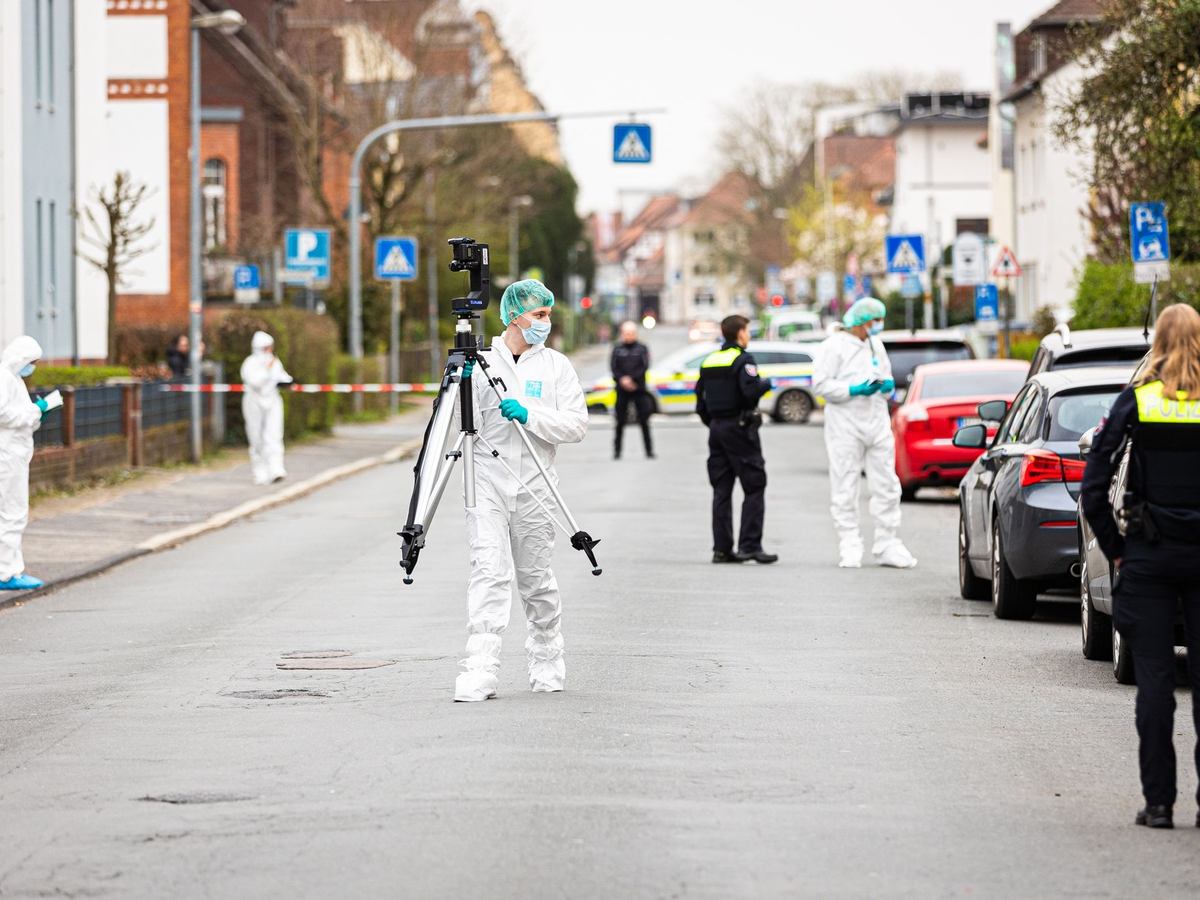 Die Polizei sperrte den Tatort ab. Am Samstagnachmittag rückten Einsatzkräfte der Spurensicherung an. In weißen Anzügen sicherten sie an dem Haus und an der Straße Spuren und machten Fotos. Weil sich die Tat in einem Wohngebiet ereignete, sucht die Polizei dort nach Zeugen.