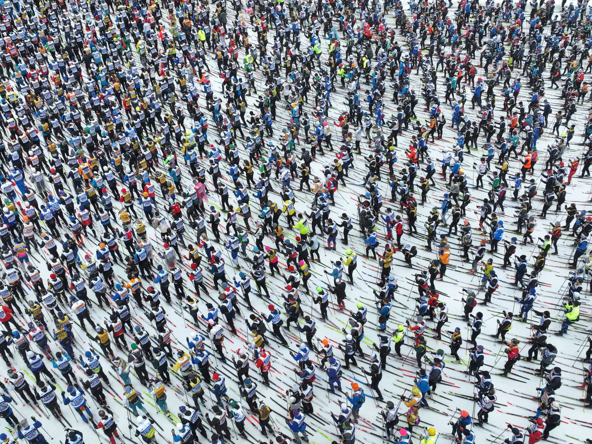 Dieses GerÀusch ist einzigartig: Wenn sich 16.000 SkilanglÀufer gleichzeitig in Bewegung setzen, wenn 16.000 Paar Skistöcke in den Schnee einstechen und 16.000 Paar Skier zu gleiten beginnen. Das Rauschen nach dem Startschuss beim Wasalauf in Schweden verbreitet eine ganz eigene Energie.