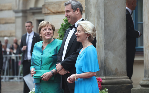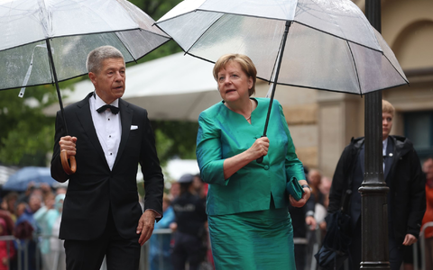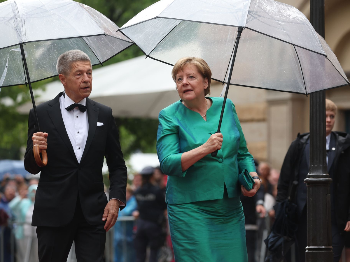 Bei starkem Regen und Donner eilte die Prominenz recht zügig über den roten Teppich: EU-Kommissionspräsidentin Ursula von der Leyen war angereist, ebenso die frühere Bundeskanzlerin Angela Merkel. Die Einladung der Stadt Bayreuth angenommen hatten auch die beiden Schauspielerinnen Maria Furtwängler und Margarita Broich («Tatort»).