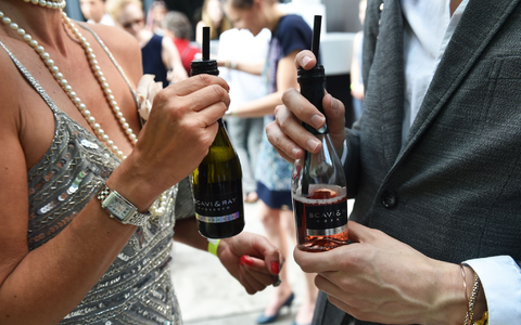 • Small Talk mit Prosecco: GĂ€ste unterhalten sich am Rande einer Modenschau in Berlin. (Archivbild) - Foto: picture alliance / ZB