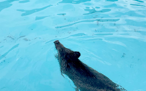 Tierischer Badegast - Wildschwein im Swimmingpool