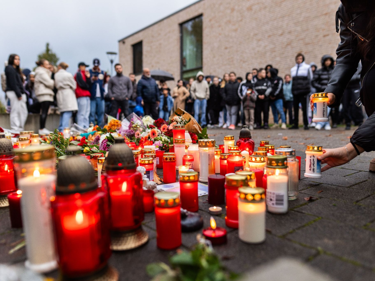 Stilles Gedenken: Am Donnerstag hatte in einer Offenburger Schule ein Schüler auf einen anderen geschossen, das Opfer ist später seinen Verletzungen erlegen. - Foto: Philipp von Ditfurth/dpa