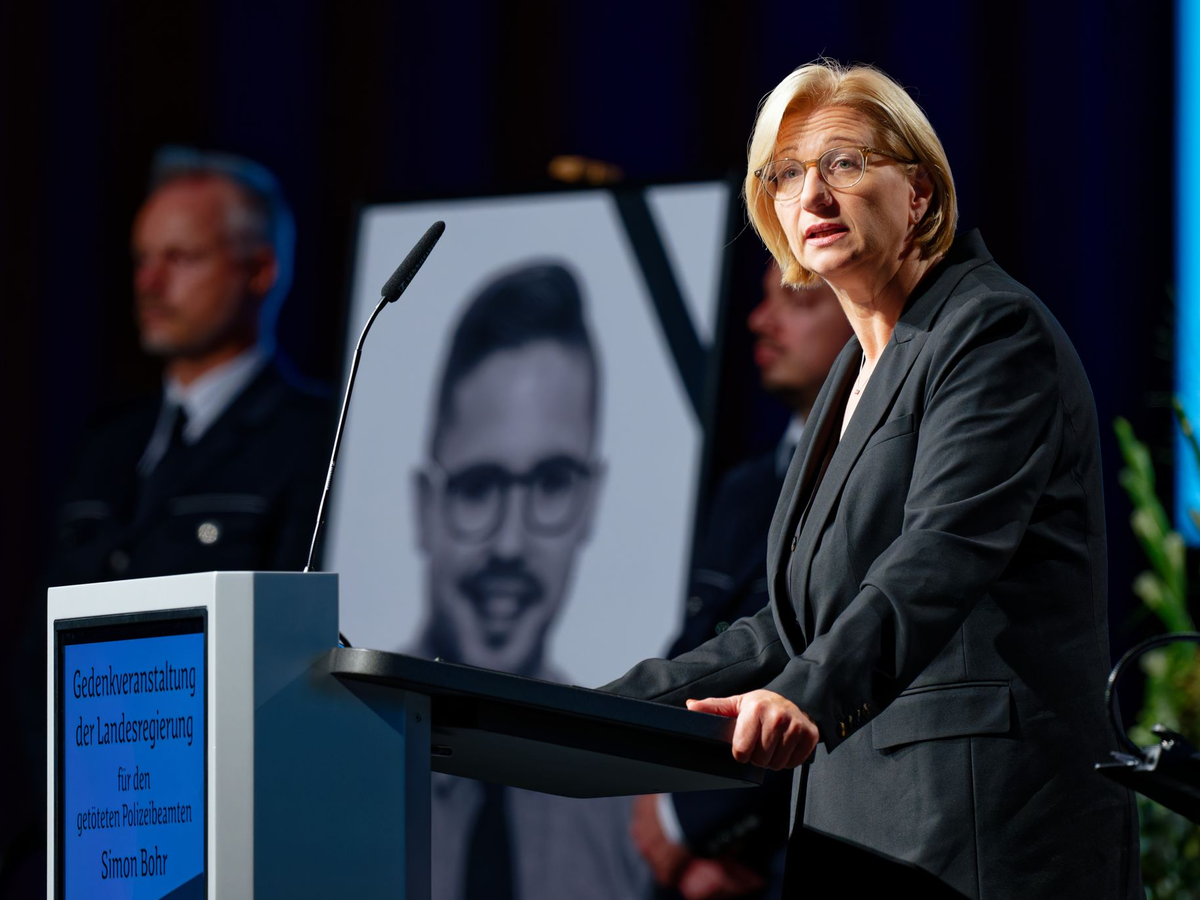 05.09.2025 - 15:55:33 | dpa.deMit einem emotionalen Gedenken haben Politiker und Polizei an den vor gut zwei Wochen im saarländischen Völklingen getöteten Polizeibeamten erinnert. «Der unfassbare Tod von Simon Bohr bleibt für immer in unserem Gedächtnis», sagte Ministerpräsidentin Anke Rehlinger (SPD) bei der Gedenkfeier der Saar-Landesregierung in Saarbrücken.