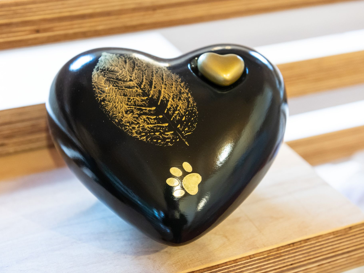 «Wird die Urne nicht zu Hause verwahrt beziehungsweise aufgestellt, steht eine große Auswahl vergänglicher Urnen zur Verfügung.» Weinmann selbst hat die Asche zweier verstorbener Hunde an einer Kette um den Hals hängen, in einer Glaskugel. Man kann aber auch die Asche seines Tieres in einen Diamanten pressen oder in eine Glaskugel einarbeiten lassen.