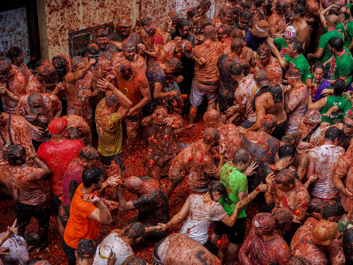 An der 77. Ausgabe der «La Tomatina», wie die traditionsreiche Veranstaltung heißt, nahmen erneut viele der rund 9.500 Bewohner von Buñol teil, vor allem aber Tausende Touristen, die eigens aus dem In- und Ausland in die Ortschaft gereist waren. Der staatliche spanische TV-Sender RTVE sprach unter anderem mit begeisterten Japanern, Russen, Briten und US-Amerikanern. Andere Medien berichteten auch von Teilnehmern aus Australien und China.
