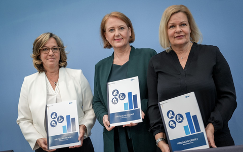«Jeden Tag werden in Deutschland im Durchschnitt ĂŒber 700 Menschen Opfer von hĂ€uslicher Gewalt», sagte Bundesinnenministerin Nancy Faeser (SPD), die zusammen mit Familienministerin Lisa Paus (GrĂŒne) und der VizeprĂ€sidentin des Bundeskriminalamts, Martina Link, das sogenannte Bundeslagebild zur hĂ€uslichen Gewalt in Deutschland vorstellte. «Die Opfer sind weit ĂŒberwiegend Frauen», betonte Faeser weiter. 70,5 Prozent heiĂt es in der offiziellen Statistik. Doch die Dunkelziffer dĂŒrfte viel höher liegen.