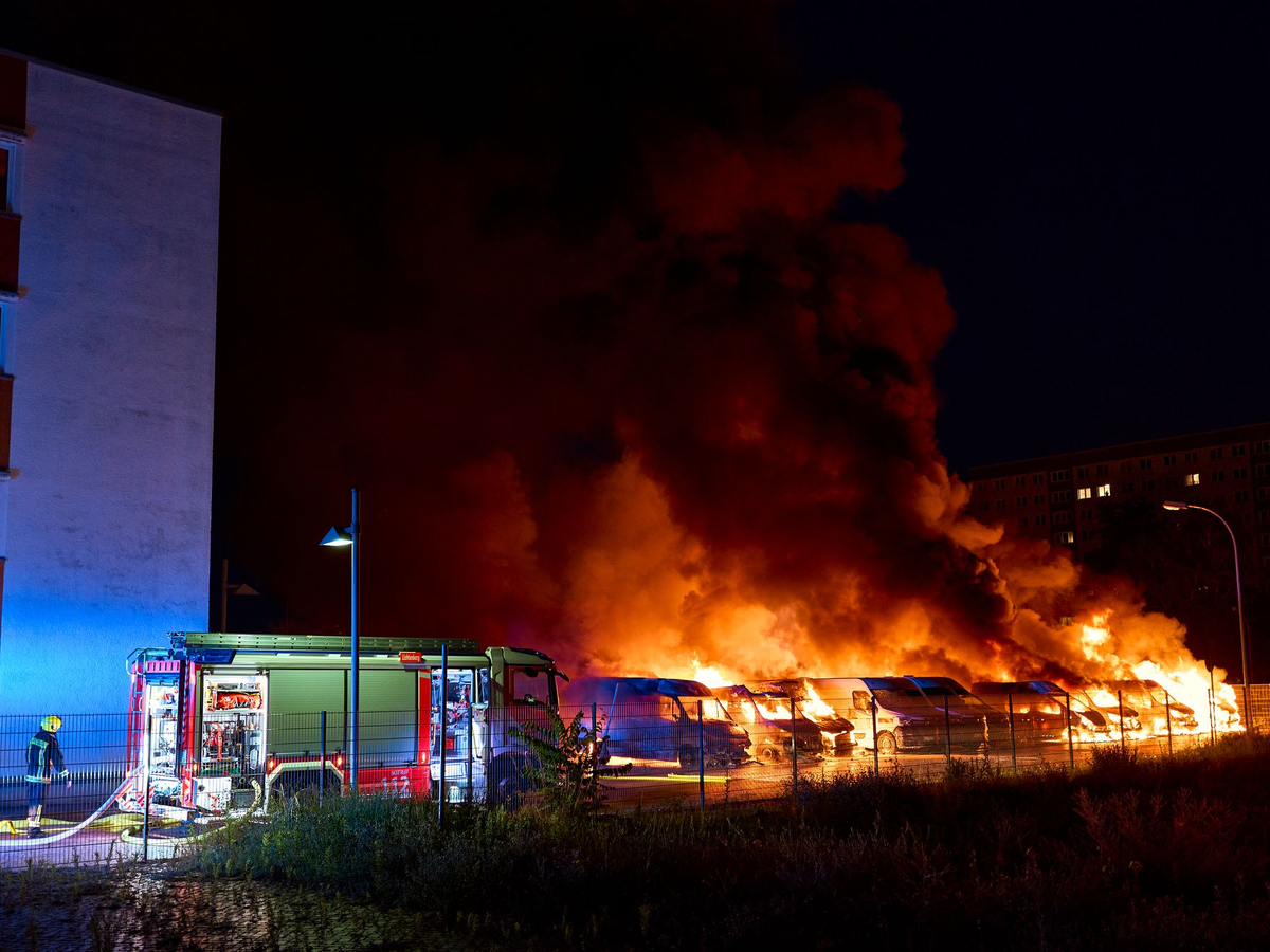 17.06.2025 - 14:43:20 | dpa.deBei einem mutmaßlichen Brandanschlag in den Berliner Stadtteilen Britz und Lichtenberg sind etwa 35 Transporter in Flammen aufgegangen. In einem Bekennertext auf einer linksextremen Internet-Plattform heißt es, der Angriff habe einem großen Versandhändler und einem Telekommunikationsunternehmen gegolten.