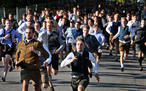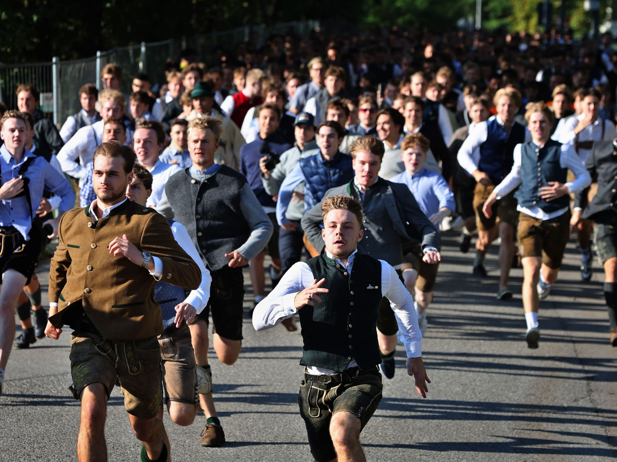Schon am frühen Morgen warteten die ersten Wiesn-Fans - zumeist in Dirndl und Lederhose - auf die Öffnung des Festgeländes. Als sich die Tore gegen 9.00 Uhr öffneten, stürmten Hunderte im Laufschritt Richtung Festzelte, um einen guten Platz zu ergattern.