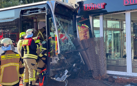Ein Linienbus ohne FahrgÀste ist in Reinbek (Schleswig-Holstein) in einen Dönerladen gekracht. Die beiden Mitarbeiter des GeschÀfts konnten sich am Freitagnachmittag mit einem Hechtsprung retten, wie ein Sprecher der Regionalleitstelle der Deutschen Presse-Agentur sagte. Sie blieben unverletzt. Der Fahrer wurde in dem Bus eingeklemmt und bei dem Unfall schwer verletzt. Zuvor hatte das «Hamburger Abendblatt» berichtet.