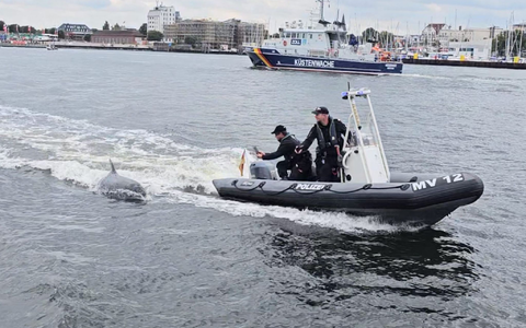 Die Rostocker Polizei hat am Abend ein Foto des Säugetiers auf Twitter veröffentlicht - mit dem Text: «SchnappschussdesTages: Tierische Begleitung auf der HanseSail - Das Schlauchboot unserer Wasserschutzpolizei wurde heute von einem Delfin begleitet.»