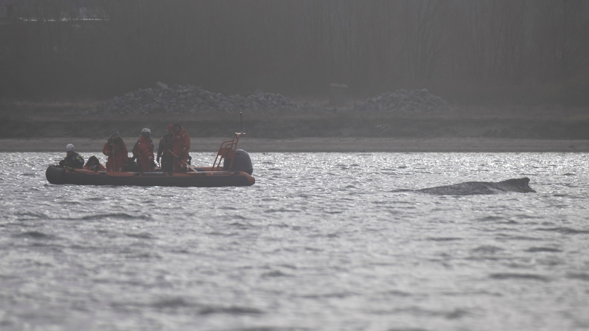 Der Wal soll jetzt in Ruhe gelassen werden - aber schafft er es aus eigener Kraft? - Foto: Philip Dulian/dpa