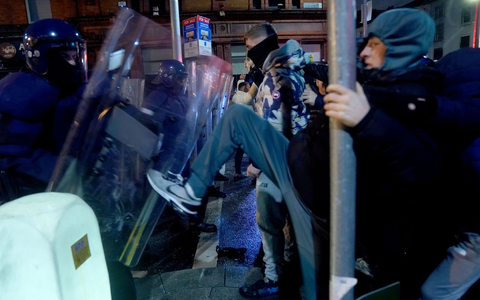 Einige Randalierer haben Feuerwerkskörper abgefeuert oder mit Stühlen und Hockern von Bars und Restaurants um sich geschmissen, wie die britische Nachrichtenagentur PA berichtete. Mehrere Beamte wurden verletzt. Die Polizei nahm 34 Menschen fest.