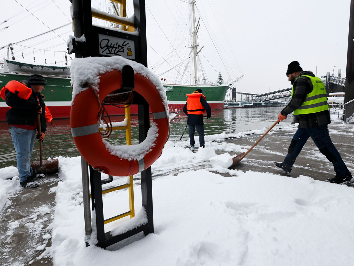 «Das wird schon eine extreme Lage», sagte ein Meteorologe des DWD in Potsdam zum Winterwetter am Freitag. In einem Streifen von der Nordsee bis in den Osten hinein können verbreitet um die 10 oder regional bis zu 20 Zentimeter Neuschnee zusammenkommen. Für die Region von Ostfriesland bis Hamburg sowie große Teile Schleswig-Holsteins hat der DWD aktuell eine Unwetterwarnung (Stufe drei von vier) ausgesprochen.