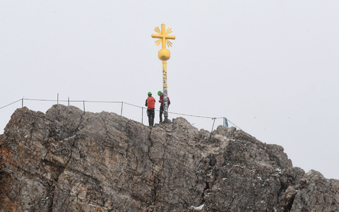 Schon mehrfach wurde das prominente Kreuz der Zugspitze renoviert. Mal brechen Zacken ab, mal muss es neu vergoldet werden. Es ist ohnehin die zweite Version, das Original von 1851 steht im Museum.
