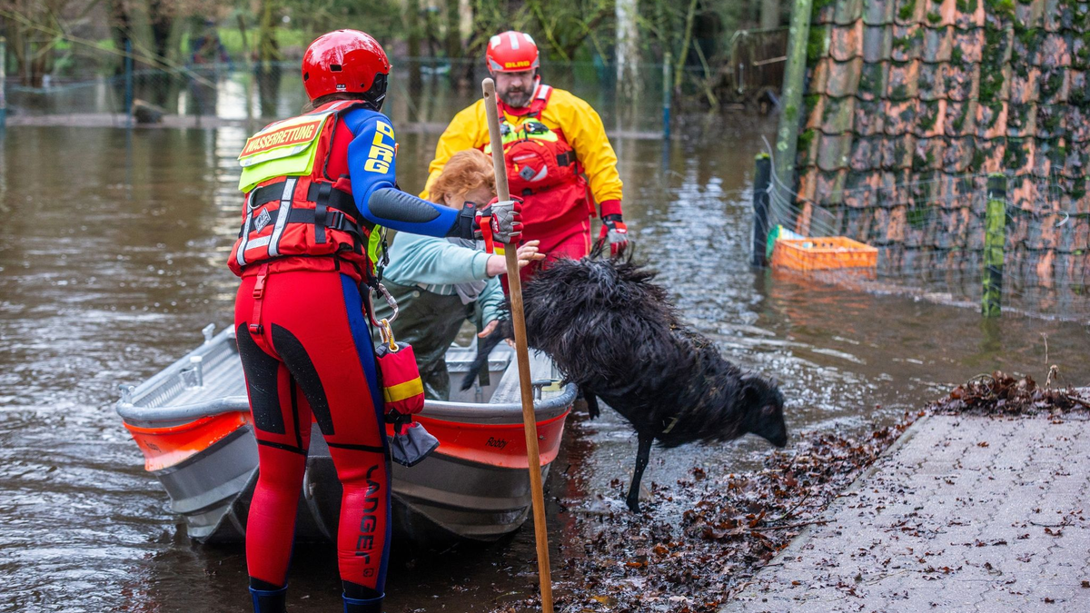 Eine Herde Heidschnucken ist in der Region Hannover mit Booten aus dem Hochwasser gerettet worden. Einsatzkräfte der Deutschen Lebens-Rettungs-Gesellschaft (DLRG) brachten die etwa zehn Tiere in der Wedemark nördlich von Hannover mit Booten über das Wasser, wie die Organisation mitteilte. Am zweiten Weihnachtstag waren die Schafe von Wassermassen des Flusses Wietze eingeschlossen worden. Die Einsatzkräfte holten die Tiere daraufhin einzeln mit Booten von einem kleinen Stück Land, auf das sie sich gerettet hatten.