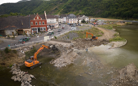 Bereits am Mittwoch habe der Rückbau begonnen, nachdem vor knapp zwei Wochen die Nepomuk-Statue samt Sockel gesichert worden war, sagte Ortsbürgermeister Hostert. Die Steine der Brücke würden zur Wiederverwendung sortiert. Anders als zunächst erwartet dauere der Rückbau nicht mehrere Wochen. Am Freitag solle es aber noch Arbeiten geben.