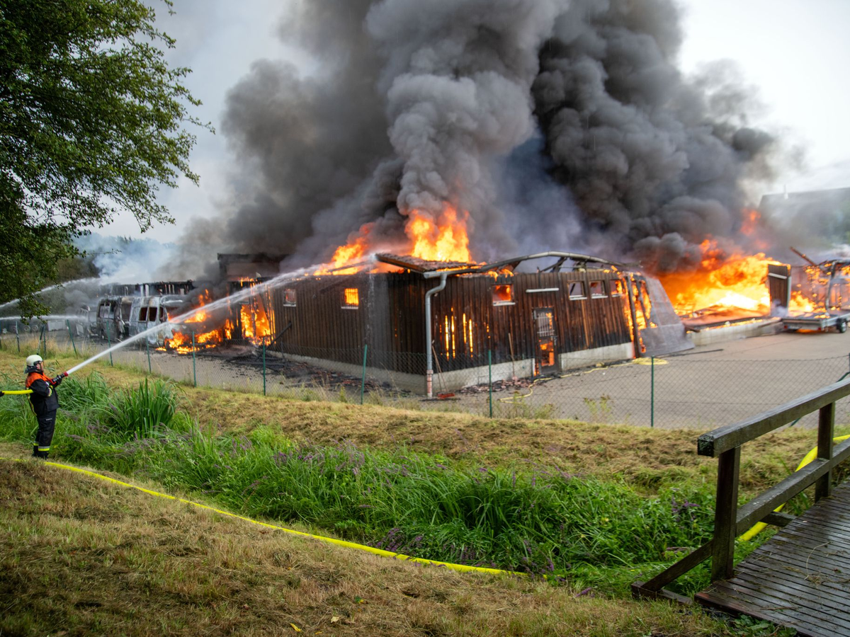 Ähnlich äußerte sich der Besitzer, wie eine dpa-Reporterin vor Ort berichtete. Der Eigentümer der 2.000 Quadratmeter großen Halle schätzte den Schaden laut Polizei auf etwa fünf Millionen Euro.