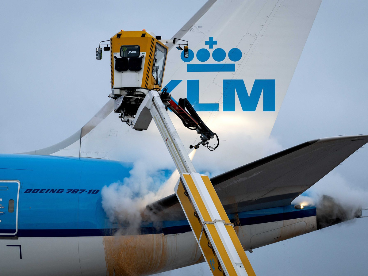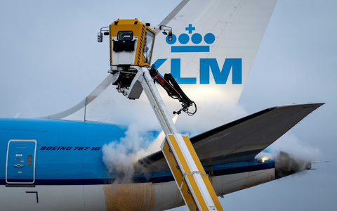 Inzwischen geht der Fluggesellschaft KLM die Flüssigkeit aus, mit der Flugzeuge enteist werden müssen. Der Lieferant aus Deutschland könne wegen des Wintereinbruchs in Europa nicht liefern, teilte KLM mit. Mitarbeiter der Airline würden nun den Entfroster persönlich abholen. In den vergangenen Tagen hat KLM nach eigenen Angaben 85.000 Liter pro Tag verbraucht.
