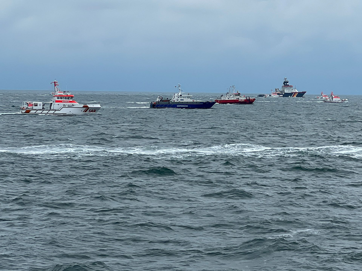 Sechs Seenotrettungskreuzer der DGzRS suchten am Unglücksort nach den Vermissten. Auch der Notschlepper «Nordic» und weitere Schiffe von Behörden waren im Einsatz. Die Deutsche Marine beteiligte sich mit einem SAR-Rettungshubschrauber. Auch das Kreuzfahrtschiff «Iona» der Reederei P&O Cruises, sei gebeten worden, am Unglücksort zu bleiben. Schiffbrüchige könnten an Bord medizinisch versorgt werden, hieß es.