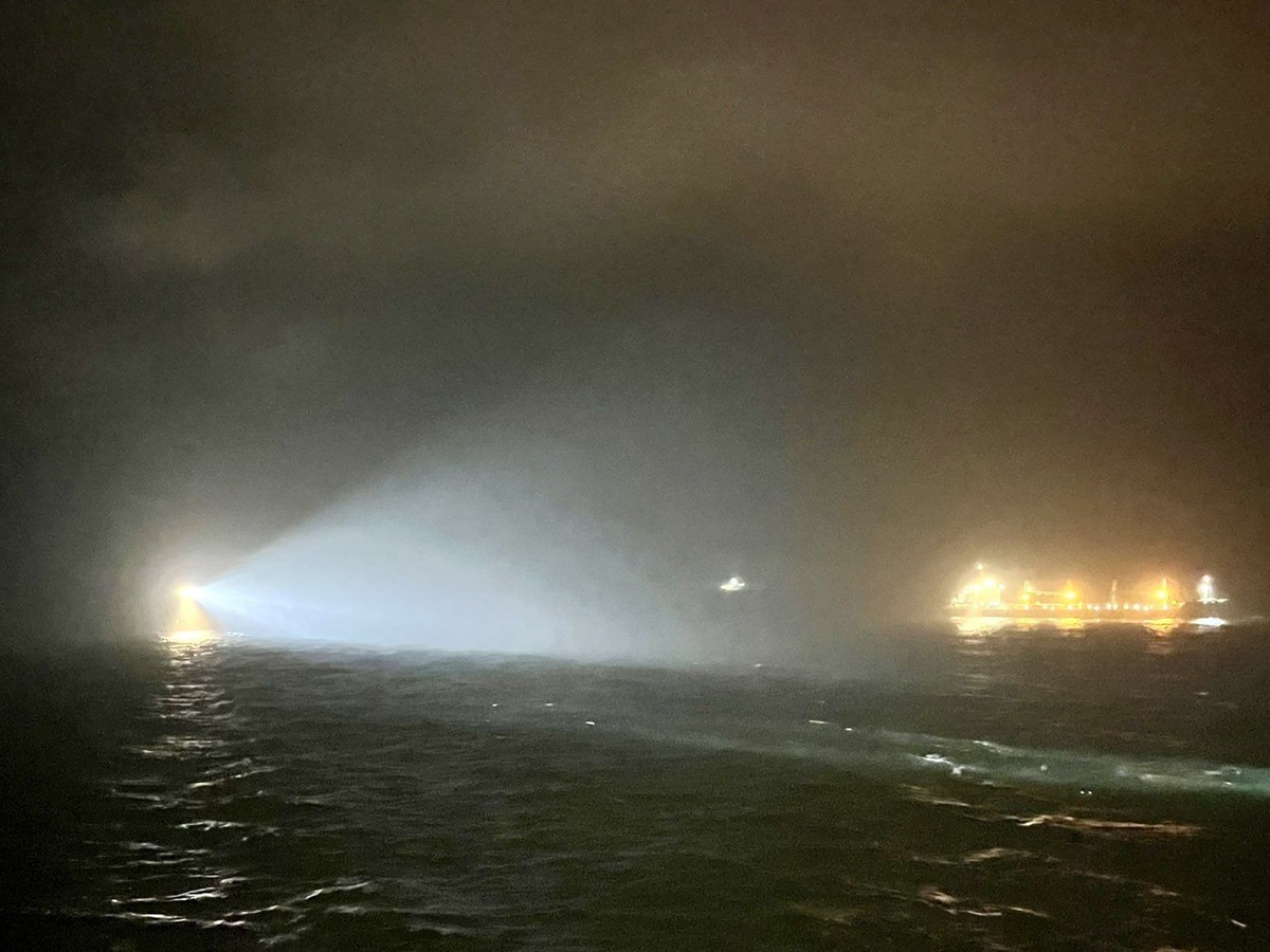 Bei völliger Dunkelheit stießen gegen 5.00 Uhr am Dienstagmorgen das Massengutschiff «Polesie» und das Küstenmotorschiff «Verity» in der Deutschen Bucht zusammen. Fotos vom Unglücksort zeigten, wie Lichtkegel von Suchscheinwerfer des Kreuzfahrtschiffes «Iona», das zufällig in der Nähe unterwegs war, kurz nach der Havarie am frühen Morgen die dunkle Wasseroberfläche an der Unglücksstelle absuchten.