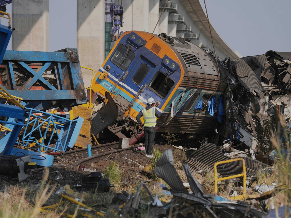 Der Baukran am Mittwoch war in der Provinz Nakhon Ratchasima, etwa 230 Kilometer nordöstlich von Bangkok, auf einen vollbesetzten Zug gestürzt, der daraufhin entgleiste und teilweise Feuer fing.