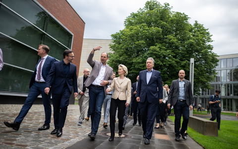 EU-KommissionsprĂ€sidentin Ursula von der Leyen hat die Menschen in Europa aufgefordert, angstfrei und mit Mut neue Technologien wie die KĂŒnstliche Intelligenz zu nutzen. Die EuropĂ€ische Union habe bislang vor allem Gesetze wie das Gesetz ĂŒber digitale Dienste auf den Weg gebracht, die als Leitplanken fĂŒr einen verantwortungsvollen Umgang mit der KĂŒnstlichen Intelligenz und der Digitalisierung dienten, sagte die CDU-Politikerin am Montag bei einem Besuch des Hasso-Plattner-Instituts (HPI) in Potsdam. Auf dieser Basis könne man mutig voranschreiten.