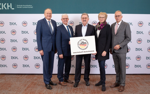 Berlin - Anlässlich des Handelskongresses haben die fünf Vorstandsmitglieder der Zentrale Koordination Handel-Landwirtschaft e. V. (ZKHL) heute in Berlin eine wegweisende Branchenvereinbarung zur Einführung des Herkunftskennzeichens Deutschland unterzeichnet. Am selben Tag haben die Vertreter der führenden deutschen Handelsunternehmen ALDI Nord, ALDI SÜD, EDEKA, Kaufland sowie Lidl und REWE Group eine Absichtserklärung zugunsten des neuen Signets abgegeben, welches für Authentizität und echtes "Made in Germany" stehen wird. Mit dem Herkunftskennzeichen Deutschland werden Verbraucherinnen und Verbraucher zukünftig Erzeugnisse der deutschen Land- und Ernährungswirtschaft auf den ersten Blick im Lebensmitteleinzelhandel erkennen.