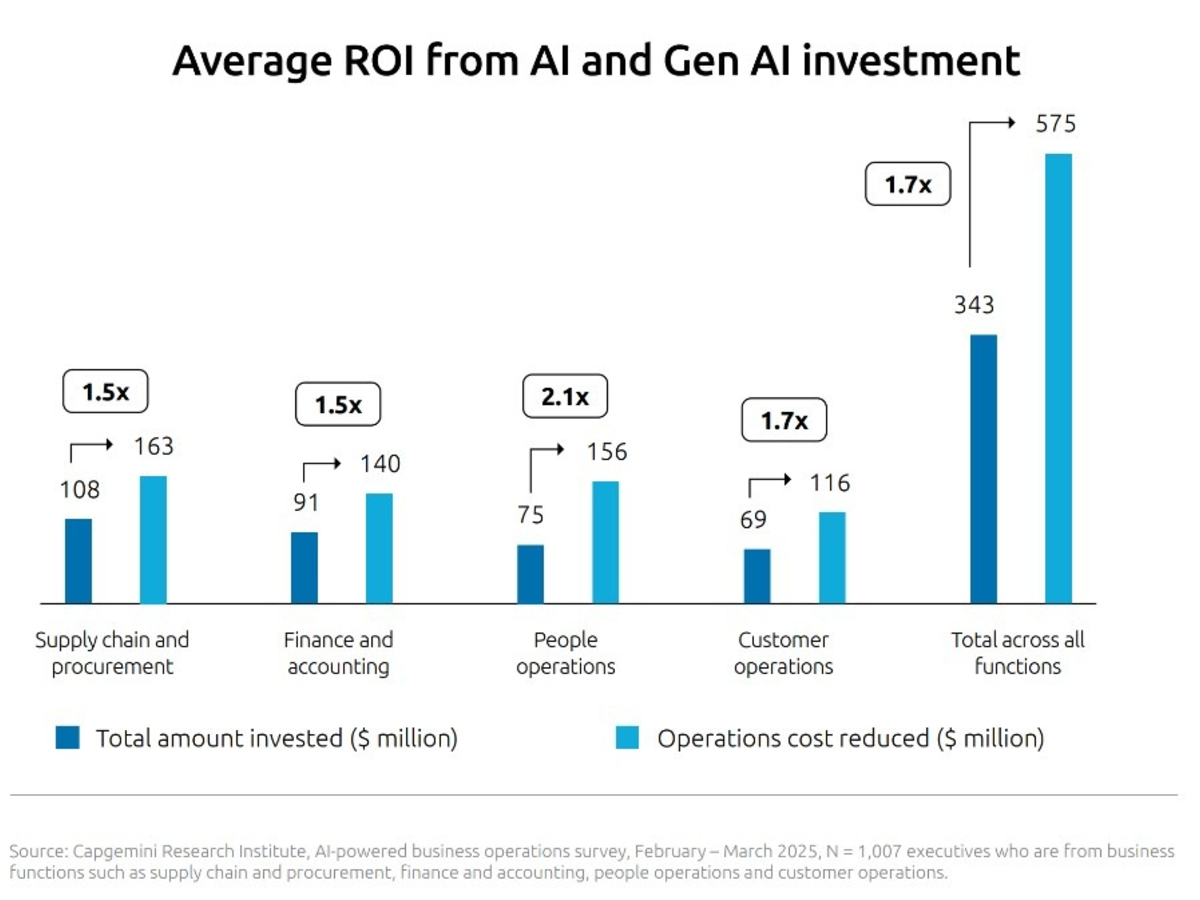 Im Zuge geplanter Investitionen in Daten und KI-Infrastruktur zeigten sich einige Unternehmen skeptisch, ob sich der Return on Investment (ROI) ihres umfassenden KI-Portfolios sowie der Vielzahl von Initiativen realisieren lässt. Die Studie stellt fest, dass diese anfänglichen Bedenken zusehends schwinden, da die Unternehmen inzwischen deutliche Rendite verzeichnen: Die Befragten Unternehmen erzielten durchschnittlich das 1,7-fache ihrer KI-Investitionen. Vor diesem Hintergrund erhöhen viele Unternehmen ihre Budgets in diesem Bereich: 62 Prozent der Befragten investieren in diesem Jahr mehr in Gen AI als im Vorjahr.