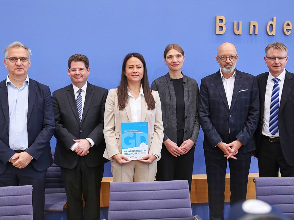 "In den beiden kommenden Jahren erholt sie sich zwar spürbar. Angesichts anhaltender struktureller Schwächen wird diese Dynamik allerdings nicht von Dauer sein." Zur Stärkung der Verteidigungsfähigkeit und Investitionen in Infrastruktur und Klimaschutz nutzt die Bundesregierung erweiterte Verschuldungsregeln. Daraus ergeben sich in den kommenden Jahren Impulse - allerdings mit Einschränkungen: Erstens fließen Mittel, etwa für Bau- und Rüstungsprojekte, wegen langer Planungs- und Vergabezeiten langsamer ab als im Haushalt vorgesehen. Zweitens dienen Kredite auch dazu, eine eigentlich fällige Konsolidierung zu vermeiden. Drittens entsteht 2027 trotz der verschobenen Mittel aus den erweiterten Kreditmöglichkeiten ein erheblicher Konsolidierungsbedarf. Die Binnenwirtschaft kommt den Instituten zufolge dennoch spürbar in Fahrt, allerdings werden die strukturellen Probleme nur kaschiert: Grundlegende standortstärkende Reformen bleiben aus: Die Perspektiven verschlechtern sich, was sich auch in voraussichtlich sinkenden Wachstumsraten des Produktionspotenzials widerspiegelt. Hohe Energie- und Lohnstückkosten im internationalen Vergleich, Fachkräftemangel sowie eine weiter abnehmende Wettbewerbsfähigkeit bremsen die langfristigen Wachstumsaussichten weiterhin. Während die Dienstleistungsbereiche, insbesondere im öffentlichen Sektor, in den kommenden zwei Jahren kräftig zulegen, wird die Erholung im Produzierenden Gewerbe wohl nur verhalten ausfallen. Vor allem die Auslandsnachfrage nach deutschen Waren schwächelt - wegen der schwindenden Wettbewerbsfähigkeit und höherer Zölle. Daher fallen kräftige Zuwächse bei den Exporten dieses Mal als Treiber aus. Gestützt durch die expansive Finanzpolitik konzentriert sich die Erholung auf die Binnenwirtschaft. Mit der konjunkturellen Belebung dürfte sich auch die Lage am Arbeitsmarkt den Ökonomen zufolge spürbar verbessern. Zusammen mit steigenden real verfügbaren Einkommen stärkt das den privaten Konsum und damit die konsumnahen Dienstleistungen. Die Verbraucherpreise werden im Prognosezeitraum voraussichtlich um gut zwei Prozent steigen. Insgesamt ist die wirtschaftliche Entwicklung in Deutschland erheblichen Risiken ausgesetzt: Der Handelsstreit zwischen den USA und der EU birgt großes Eskalationspotenzial, insbesondere wenn EU-Zusagen nicht eingehalten werden können. Hinzu kommt, dass die gesamtwirtschaftlichen Auswirkungen der expansiven Finanzpolitik schwer abschätzbar sind und stark von der konkreten Ausgestaltung abhängen. Die sogenannte "Gemeinschaftsdiagnose" wird durch die Institute Ifo, DIW, IfW, RWI und IWH im Auftrag des Bundeswirtschaftsministeriums erstellt. Sie dient der Bundesregierung als Basis für ihre eigene Projektion, die wiederum als Grundlage für die Steuerschätzung herangezogen wird.